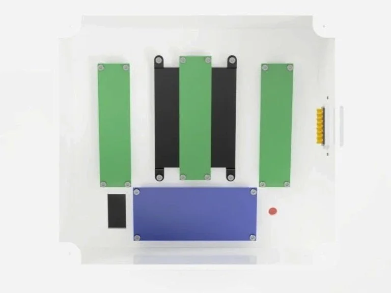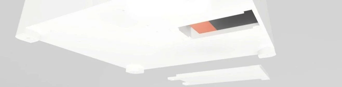 Designing the device to have a separate base plate allows for easy access to internal components via the four counterbored screws located within the feet at each corner of the plate.