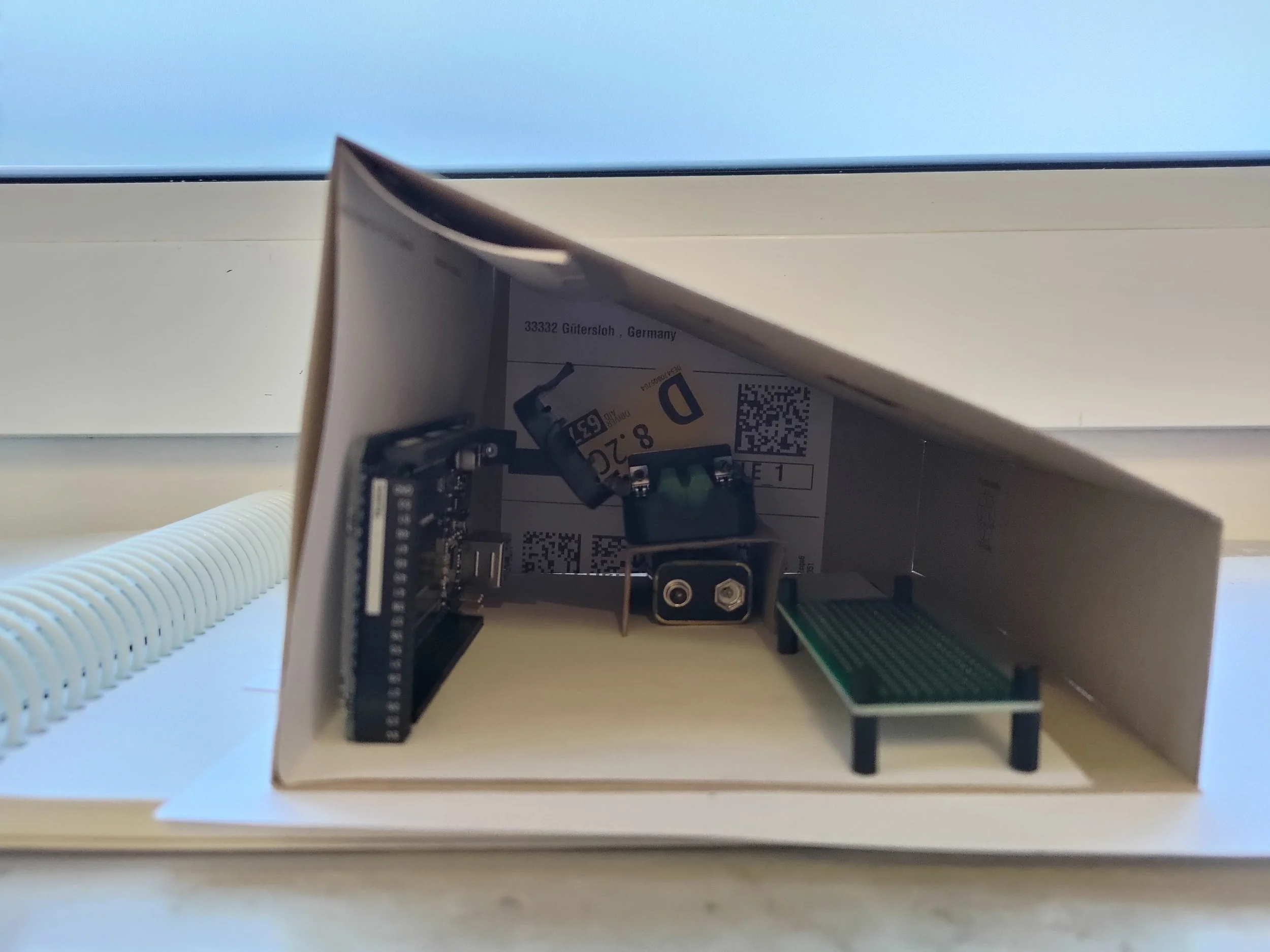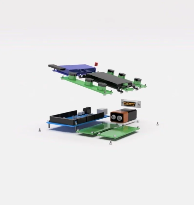 A removable bottom panel that provides a mounting location for the Arduino Mega and access to the 9V battery.