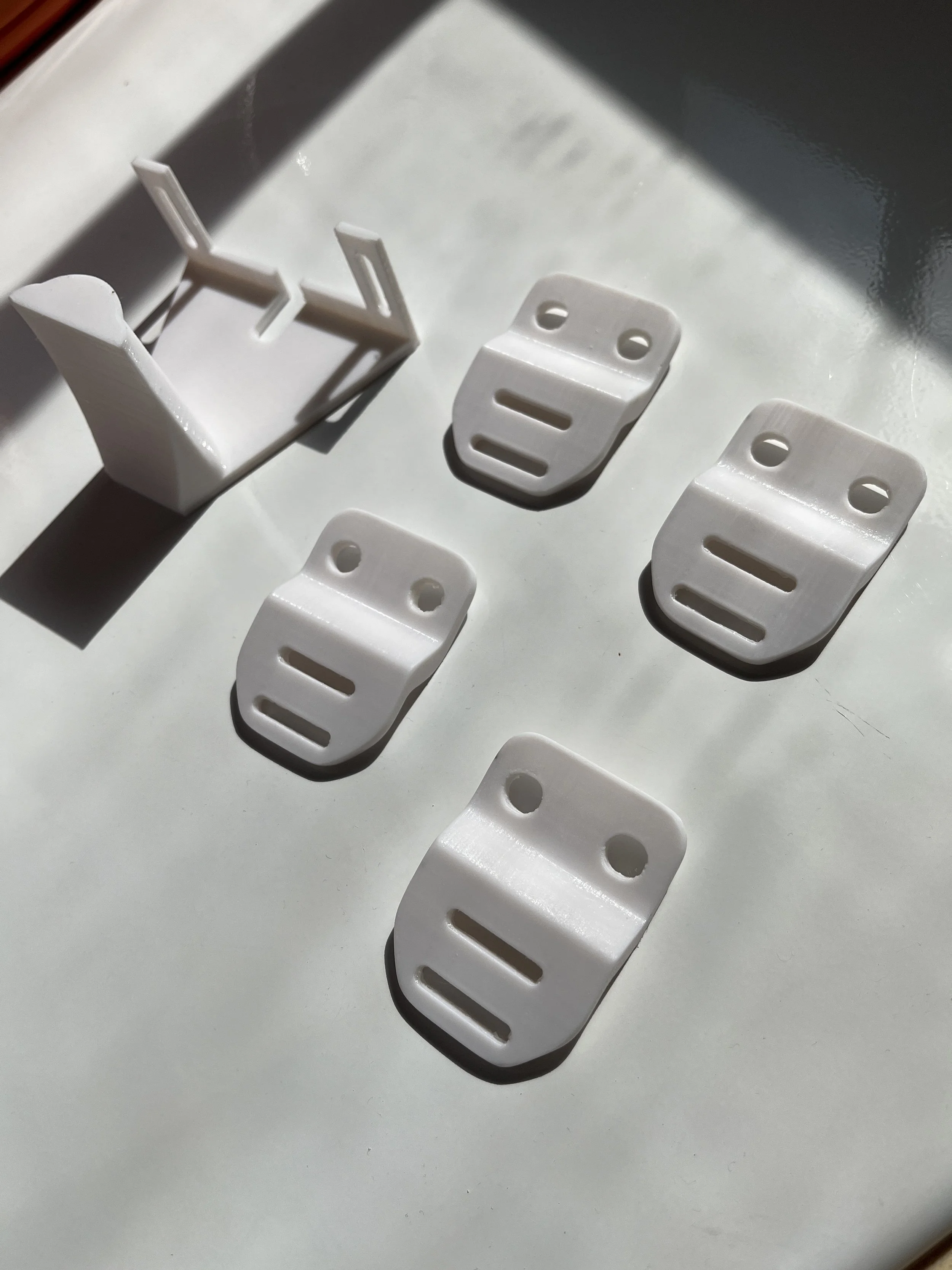A series of custom mounts for a wire guide channel as well as a headphone holder compatible with the client’s standing desk.