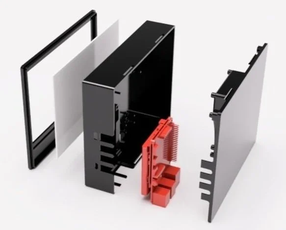 The back plate served the primary purpose of enclosing the raised pegs and securing the openings made to accommodate the ports. It too snapped into the mid plate via joints at the top and bottom of the enclosure, however the back plate used cantilever snap joints instead of the more annular design previously used.