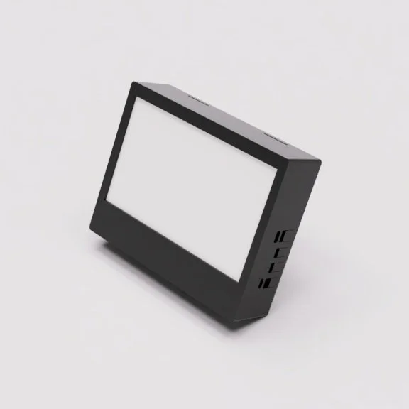 A custom designed enclosure to hold an Amazon Kindle Tablet to be used as a display.